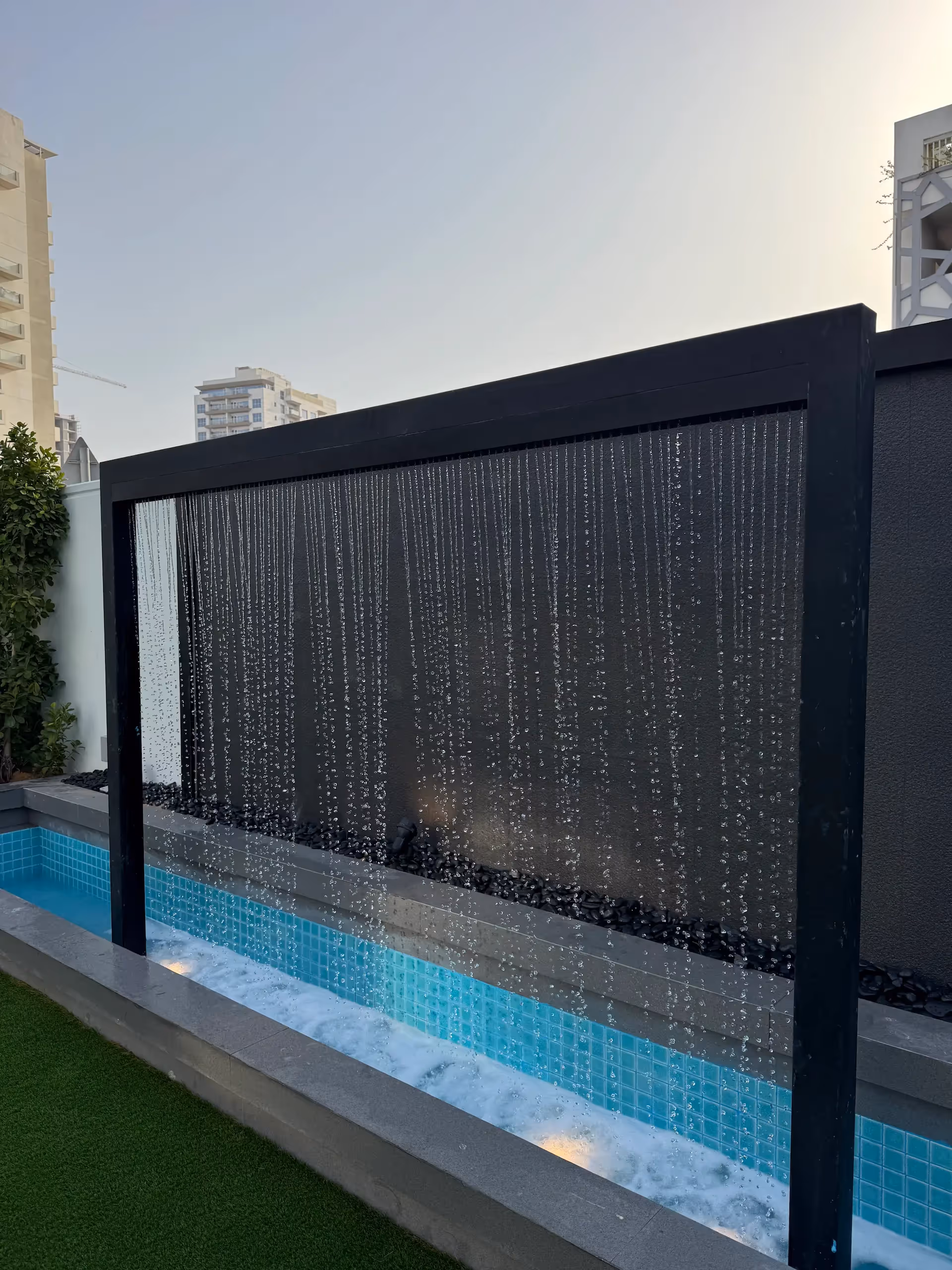Lighting plays a crucial role in defining the villa’s mood and ambiance. Recessed and pathway lights softly accentuate architectural lines, while underwater illumination enhances the water feature’s evening charm.