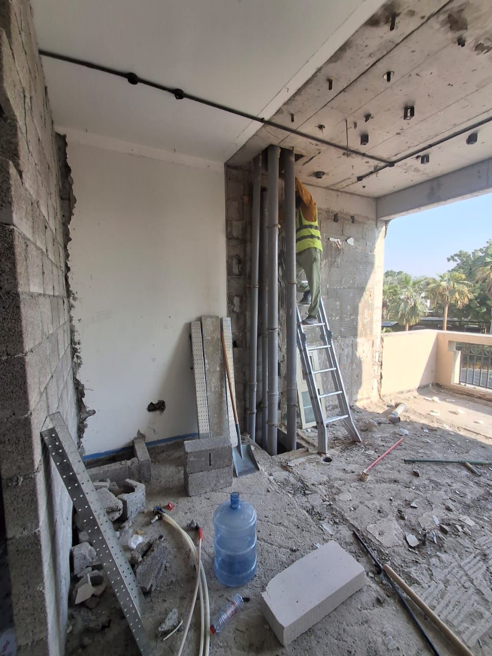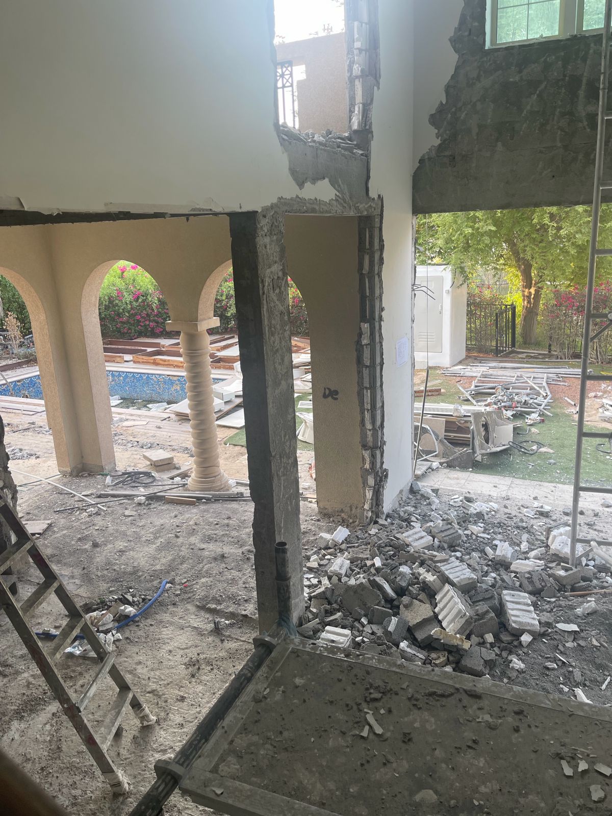 Material removal and external cleanup in progress. Landscaping and façade treatments will begin once interior heavy works are completed.