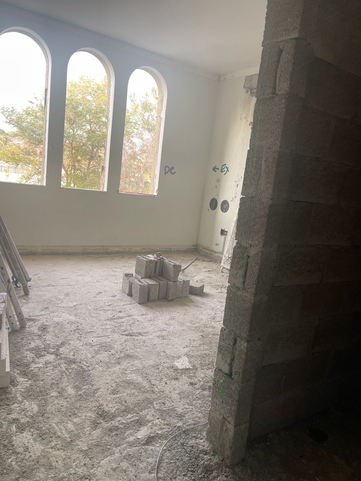 Major demolition, wall removals, and layout restructuring are underway. Existing partitions are being dismantled to open the ground-floor sightlines and reshape bedroom configurations.